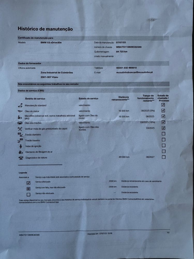 Viatura Nacional, histórico manutenção todo na marca, acabou de efectuar revisão na BMW, 2 pneus novos Brigestone atrás, 2 cabos de carregamento, tapetes borrachas BMw, pasta e manuais, 2 Chaves.