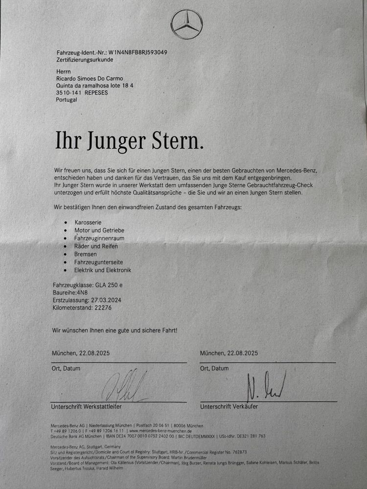Viatura importada, proveniente concessionário Mercedes na Alemanha, revisão efetuada, registo digital de serviço, garantia Mercedes até 2027/09 garantia baterias de 6 anos ou 100.000km, 2 chaves.
